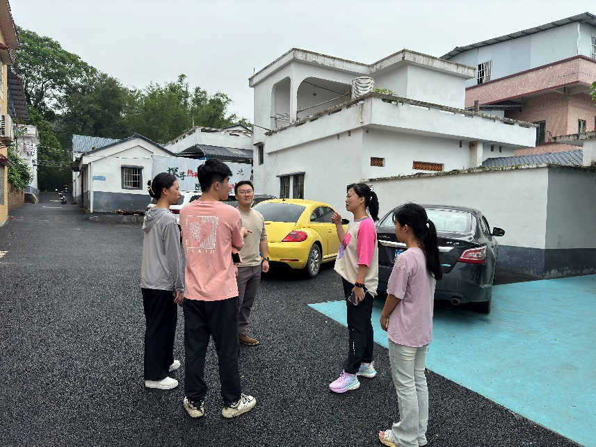 根据团花都区委、校团委的工作部署,建筑学院拟组建一支青年大学生“百千万工程”突击队与国泰村进行结对,主要参与农房风貌美化提升工作。调研团队走访了村委确定的农房美化重点片区,查看“赤膊房”有关情况。本次农房风貌美化第一阶段任务围绕中国热带农业科学院广州分院的“热科驿站”进行,驿站负责人陈广宇为调研团队师生介绍了驿站的建设和运营情况。