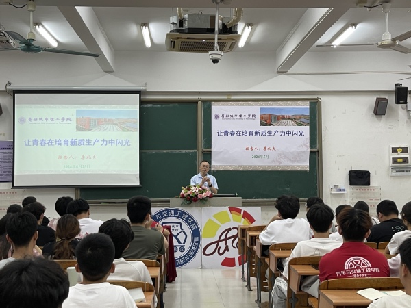 本网讯(记者 王宇航)为夯实青年的思想理论学习基础,让青春在培育新质生产力中闪光,5月11日晚,汽车与交通工程学院院长李礼夫在A5-204讲授以“让青春在培育新质生产力中闪光”为主题的院长思政第一课。汽车与交通工程学院团委副书记、青马工程及团校培训班全体学员共同聆听了本次思政课。