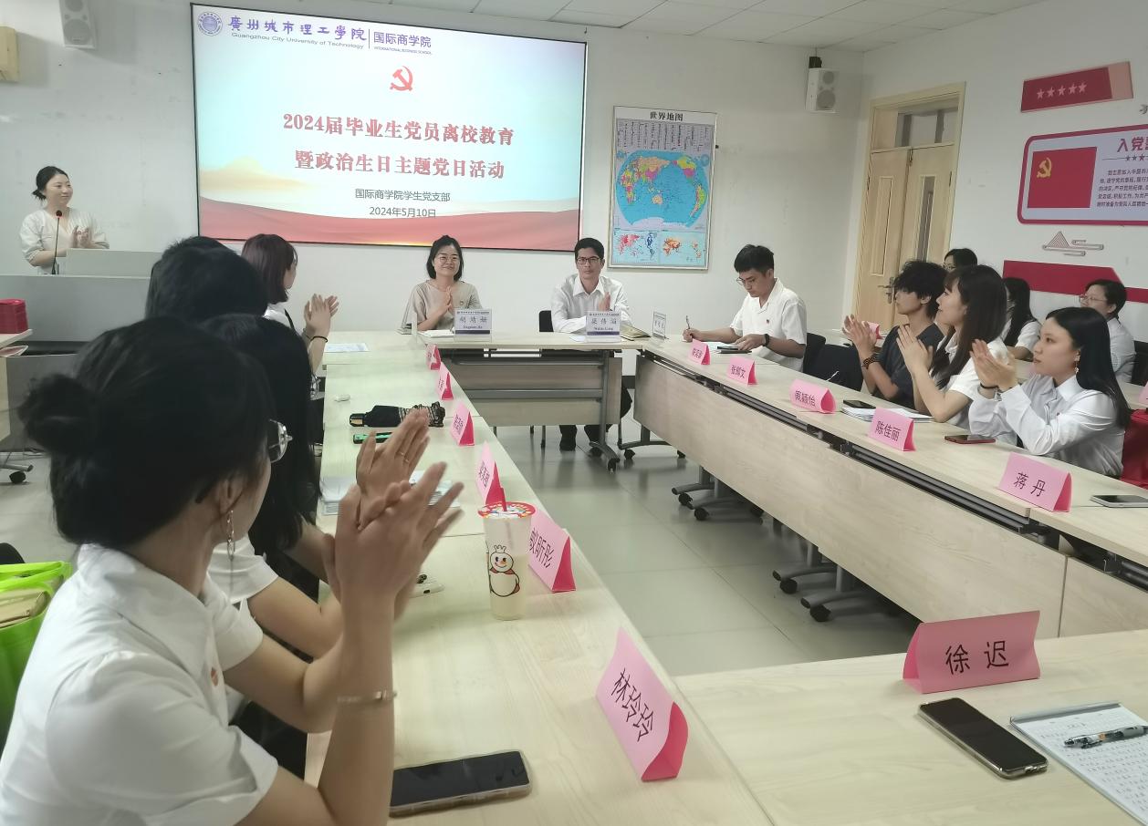 本网讯(记者 庄祉祎 林素金)为激励毕业生党员始终红心向党,铭记入党初心,进一步强化身份意识和责任意识,5月10日下午,国际商学院党总支在A6-505开展2024届毕业生党员离校教育暨政治生日主题党日活动,学院党总支副书记梁伟滔、部分教工党员及全体毕业生党员参加。