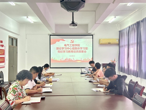 本网讯(记者 李嘉琪)为深入学习贯彻习近平总书记关于党纪学习教育的重要讲话和重要指示精神,贯彻落实学校党委关于党纪学习教育的工作部署,电气工程学院于5月14日下午在B6-403召开党总支理论学习中心组(扩大)学习会暨党纪学习教育动员部署会。学院院长赵杰,党总支副书记符红勋、副院长沈娜及党总支委员,各党支部书记、副书记等人员参加学习。会议由符红勋主持。