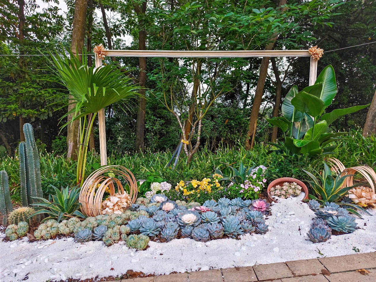 “听见花开·绿满云山”艺术小园圃设计竞赛,选取多肉植物为题材,竞赛活动设置了方案评选、施工布展、现场评比、网络投票、成果展示等多个评审环节。竞赛自2024年4月发布方案征集以来,共14所省内高校40多个作品参与角逐,其中不乏园林专业的老牌高校。园圃设计竞赛是建筑学院首次涉足的竞赛项目,学院高度重视赛事组织工作,学院党政联席会进行了专门研究和部署,将本次竞赛作为风景园林新专业开设后的一次重要教学实践活动。为充分展现学院特色,发挥学科交叉优势,学院组建了3支建筑学专业高年级学生混合风景园林专业一年级学生的竞赛团队,配备了高级工程师、青年骨干教师以及辅导员组成的指导教师团队,为竞赛全过程各环节提供有力保障。