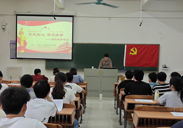 本网讯(记者 刘霖杭 陈子涵)为深入学习贯彻习近平总书记关于党纪学习教育的重要讲话和重要指示精神,进一步加强对党员、入党积极分子的教育,提升其纪律意识、法治意识。汽车与交通工程学院学生第一党支部于5月28日下午在A1-104召开了“不忘初心、牢记使命”主题党日活动。学院党总支副书记、支部书记、支部宣传委员三位党员教师及学生第一党支部的全体学生参加本次活动。
