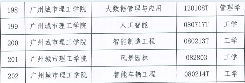 本网讯(记者 王宝军 肖平 梁顺可 宫晨 戴海燕 冯慧雅)6月6日,广东省学位委员会发布《关于公布2024年新增学士学位授予专业名单的通知》(粤学位函〔2024〕2号),同意广州城市理工学院新增学士学位授予专业5个。其中工学学士学位授予专业4个:人工智能、智能制造工程、风景园林、智能车辆工程;管理学学士学位授予专业1个:大数据管理与应用。