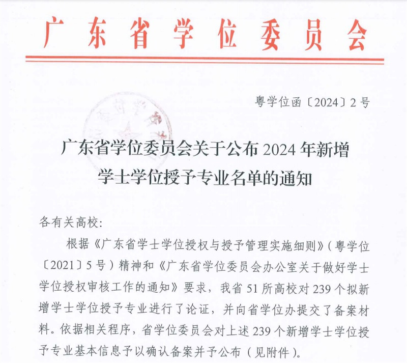 广东省学位委员会关于公布2024年新增学士学位授予专业名单的通知(冯慧雅 提供)