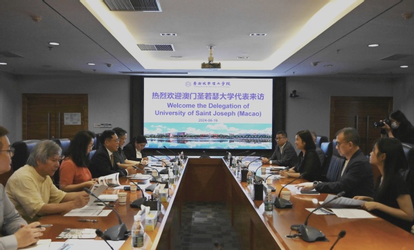 刘洊波向USJ代表团来访表示欢迎,并介绍了我校基本情况和近期的建设情况。他表示,我校注重培养高素质应用型人才和重视教育国际化办学,自2021年与USJ建立合作关系以来,至今已有8名广州城理毕业生赴USJ攻读硕士研究生,2023年7月广州城理20名骨干教师赴USJ参加教学能力培训,双方往来密切,希望此次来访能共同寻求双方的合作发展,深化两校的合作水平,推动更多广州城理的学生通过保荐研究生项目实现学历提升。