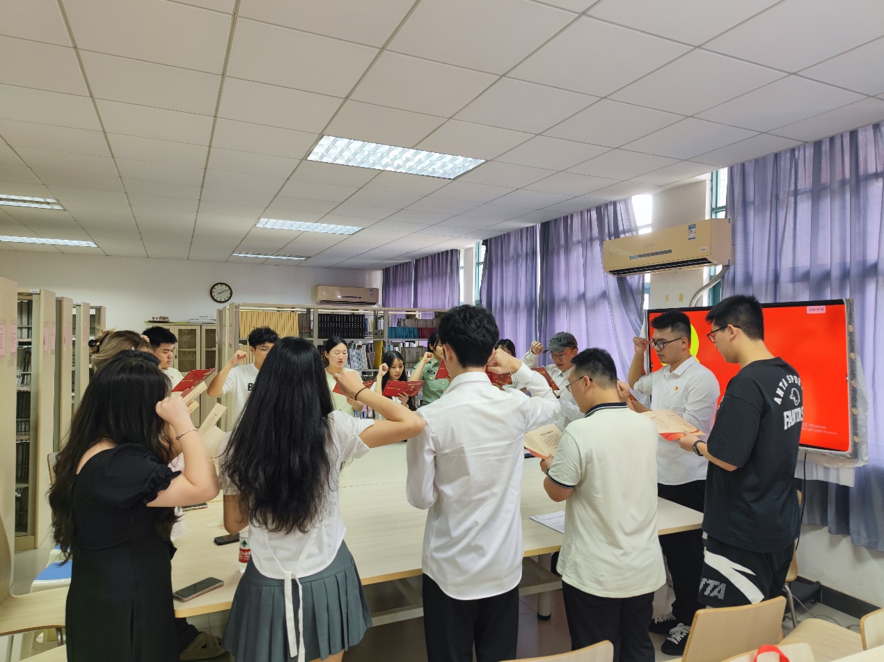 党课后,陈磊向所有毕业生党员颁发党员政治生日贺卡并带领全体党员重温入党誓词。陈磊表示,在“七一”前夕为毕业生党员上最后一堂党课,集体过“政治生日”,希望同志们不忘初心,牢记使命,践行党的宗旨,永葆党员本色,努力做一名合格的共产党员,离校前系好党员纪律教育的扣子。