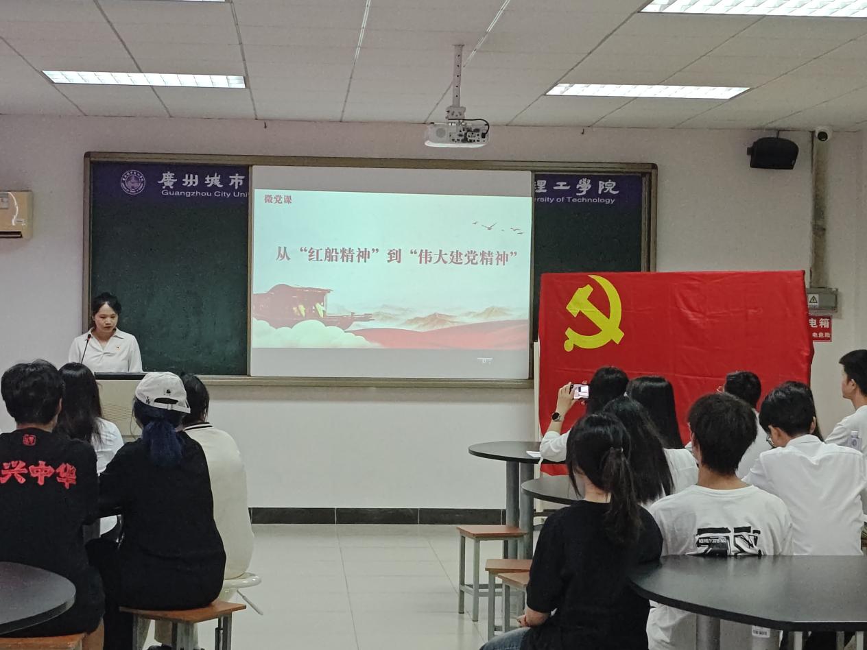 仪式结束后,现场进行了以“青春心向党 奋进新征程”为主题的党日活动。学生党支部书记马锦娴开展了“从‘红船精神’到‘伟大建党精神’”的微党课,分别对“红船精神”“伟大建党精神”以及两者之间的关系进行了阐释,引导党员同志们不忘初心与使命,赓续红色血脉,用党的奋斗历程和伟大成就鼓舞斗志、指引方向,用党的光荣传统和优良作风坚定信念、凝聚力量,用党的历史经验和实践创造启迪智慧、砥砺品格,继往开来,开拓前进。随后,在场同志积极分享了学习心得。2022级产品设计专业的李同学表示,通过学习“红船精神”和“伟大建党精神”,她将更坚定地学习积极进取的理念,继续提高自己的政治素质和工作能力,积极地为推进党的伟大事业添砖加瓦,贡献青年力量。