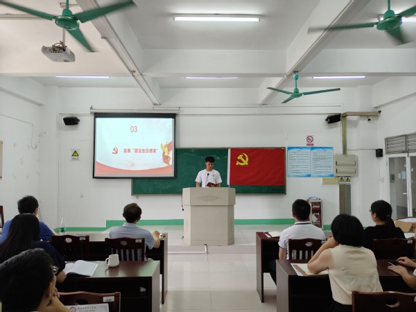 随后,新入党的学生党员余伟成、入党20年的教工党员林叙群作为代表依次上台发表政治生日感言。余伟成表示,“作为光荣的中国共产党党员,我深切感受到这份神圣的责任,将继续发扬党的优良传统,坚定理想信念,不断提高为人民服务的自觉性和能力,为实现中华民族伟大复兴的中国梦贡献自己的一份力量。”紧接着,在学院党龄最长的张继锋同志带领下,面对鲜红的党旗,全体与会党员举起右拳庄严宣誓,重温入党誓词。