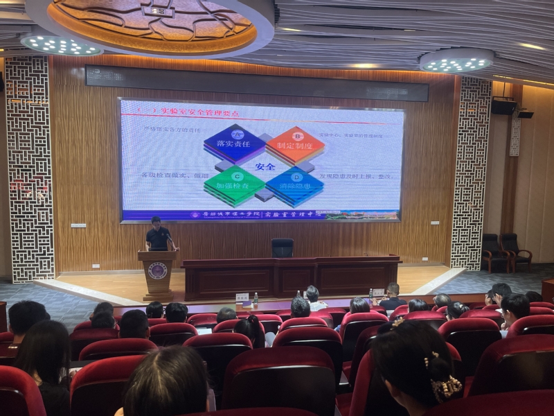 会上,实验室管理中心主任陈锐鸿主要从四个方面进行讲解:一是实验室安全制度解读,他强调要认真贯彻“安全第一,预防为主,综合治理”的安全工作方针,严格按照制度要求做好安全工作;二是实验室日常管理要点分析,特别要加强实验教学过程的安全管理和实验仪器设备的维修管理,做细做实;三是实验教学管理,从实验教学安排和实验教学大纲的规范和要求、实验教学的运行管理以及实验指导老师的职责等进行详细的介绍;四是本科合格评估要点解读,从要做什么?怎么做以及做到什么程度对迎评工作中实验室的建设管理工作逐一进行解析。