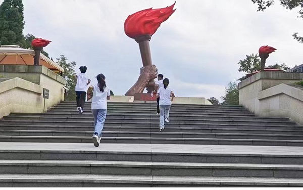 当天下午,“星火”实践团前往井冈山南山公园,向着山顶的火炬广场全力攀登,途中经过黄洋界、八面山、双马石、朱砂冲、桐木岭这五大地势险要的哨口,感受当时红军作战的艰苦与不易。据了解,南山公园最顶端的火炬广场入口到主题火炬,两侧有89个小火炬,加上主题火炬一共90个,寓意南山公园在井冈山革命根据地创建90周年之际进行提升改造。主题火炬雕塑底座下有一个占地1400平方米的“弘扬跨越时空的井冈山精神”主题展览。
