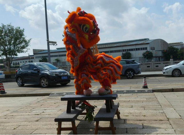 三华村醒狮队助阵表演(邹宇璇 摄)