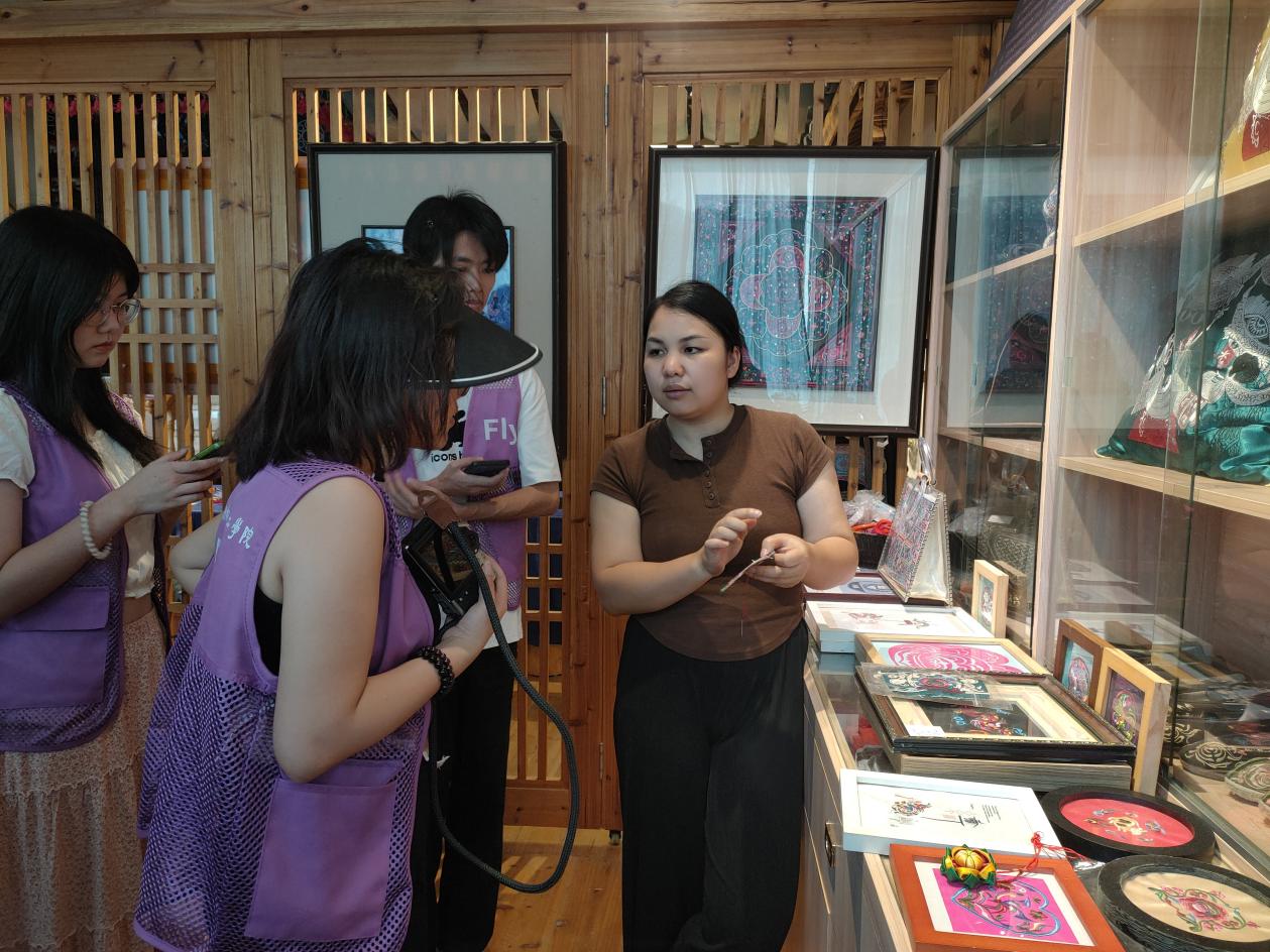 实践团成员采访侗绣技艺传承人杨甜(全春丽 摄)