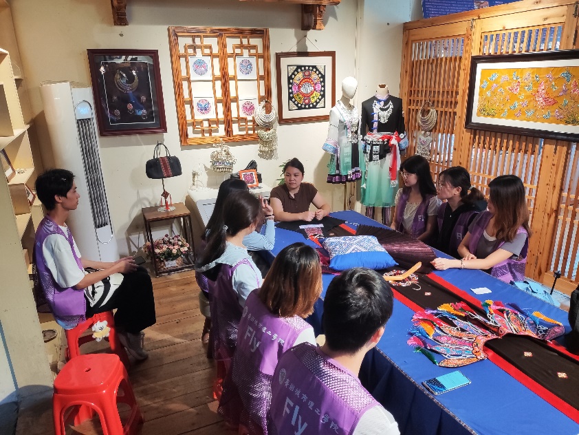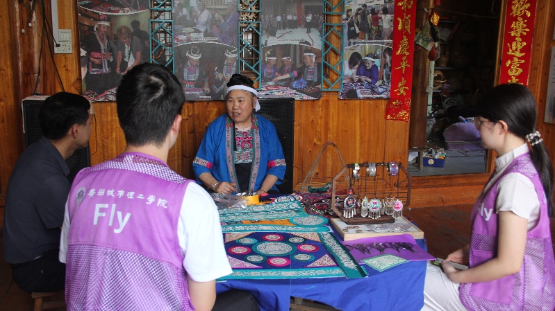 实践团调研三江清花绣坊与韦清花(吴章娟 摄)