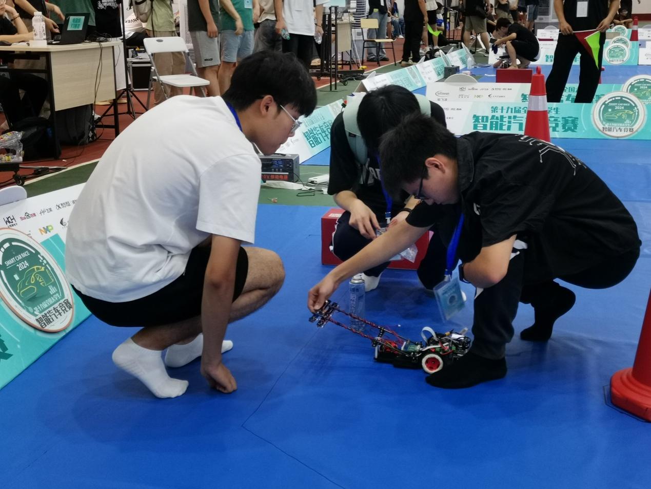 为了取得优异成绩,我校所有参赛选手都历经长达数月的作品制作和调试。尤其是最后一个月刚好也是我校的考试时间段,学生们在有限的时间内争分夺秒调试好作品。这几个月的经历,不仅锻炼了同学们理论联系实际的能力,也激发了他们从事工程技术开发的兴趣。电磁组的张远聪同学在赛后说道:“很荣幸能参加本次比赛,智能车竞赛是一个非常考验团队合作的比赛,赛场上的每一个细节和心态都有可能影响比赛结果。在赛期间我们学习到了很多电子线路、运动控制和调试测试的知识,每一次共同努力解决问题的过程都是宝贵的经验。未来我们将继续努力,不断积累经验,吸取教训,锤炼作品,争取获得更优异的成绩。”