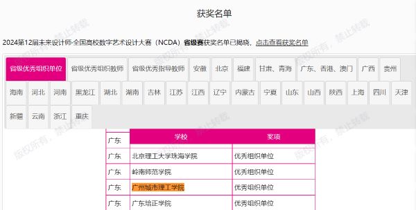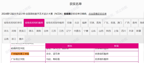 本网讯(记者 龚帅)8月12日,第12届未来设计师·全国高校数字艺术设计大赛(NCDA)省级赛奖项公布,我校机械工程学院/机器人工程学院、珠宝学院、建筑学院等组织师生参赛,最终共斩获23项省级荣誉奖项,包括一等奖5项、二等奖7项和三等奖11项。此外,还获得了省级优秀组织单位奖、优秀组织教师奖、优秀指导教师奖,展示了我校在设计教育领域的突出实力。
