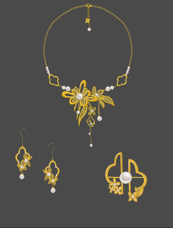 荣获一等奖的珠宝学院产品设计专业学生徐佩璇介绍到,她的获奖作品《秋日桂花香》设计灵感来源于秋分时节的桂花。秋分时节正是桂花盛开的季节,丹桂飘香,桂花在中国文化中具有重要的象征意义,它常常被用作为吉祥和富贵的象征,寄托着人们对美好生活的向往。