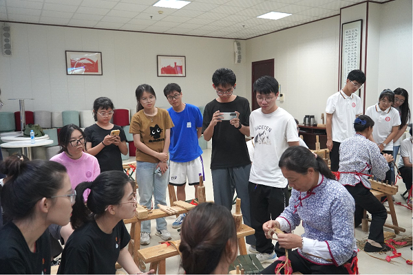 实践团成员们编织红军草鞋现场(实践团成员 摄)