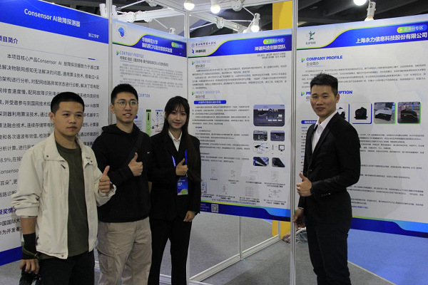 张杰(左一)和队友、指导老师一起参加2023年创新创业成果交易会(张杰 提供)