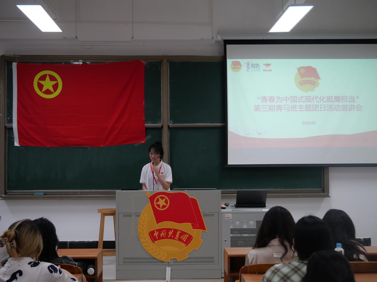 本网讯(记者 洪梓祥 许诺)为深入学习贯彻党的二十届三中全会精神,激励广大青年学生积极投身中国式现代化建设,校团委在A5-203、A5-301教室举办了第三期青马班主题团日活动宣讲会。此次活动以“青春为中国式现代化挺膺担当”为主题,吸引了全校众多青年学生参与。