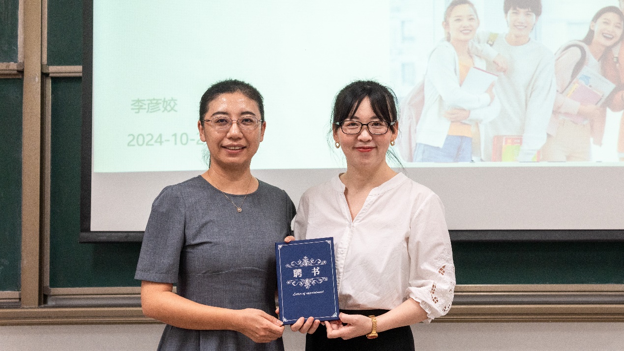 讲座最后,郭培虹向李彦姣颁发了 “智识领航导师团”成员聘书。为丰富校园文化生活,发挥图书馆第二课堂的作用,图书馆聘请校内老师成立“智识领航导师团”。后续将与导师团合作,推出更多内容丰富、贴合师生实际和需求的讲座。