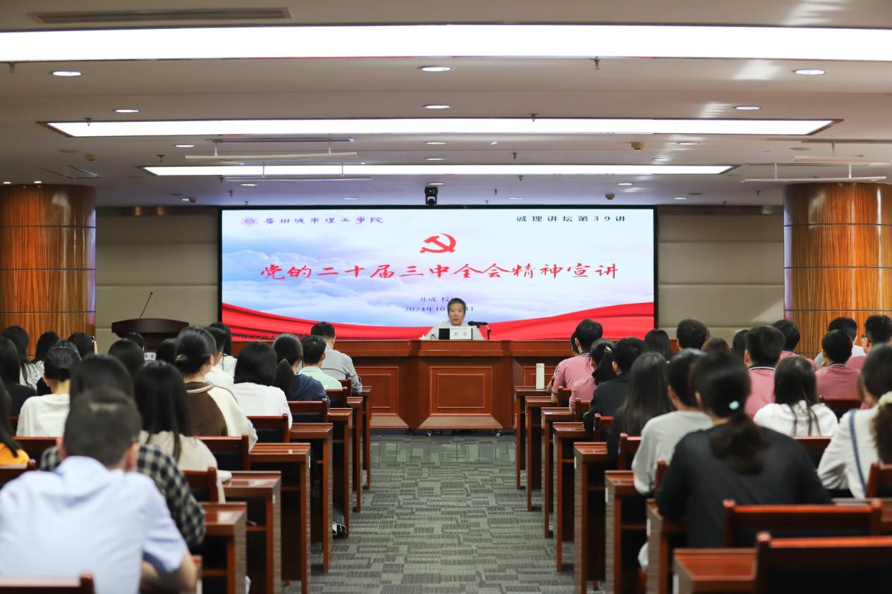 本网讯(记者 赵程远)为深入学习贯彻党的二十届三中全会精神,教育引导学生厚植爱国情怀,强化新时代使命担当,10月29日下午,校长苏成教授在行政楼617会议室,面向经济学院、土木工程学院学生党员代表、预备党员代表及入党积极分子宣讲党的二十届三中全会精神,这也是一堂精彩生动的校长“思政第一课”。