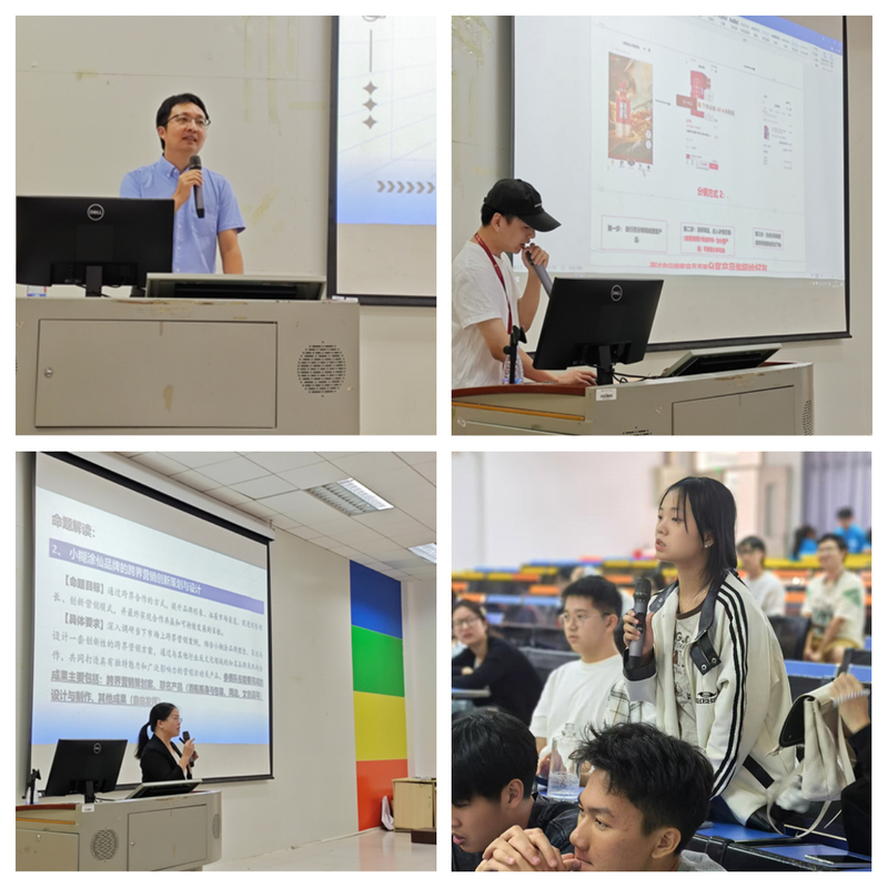 培训会开始,周智伟教师对赛事前期工作进行总结。他强调了本次大赛的目的和意义:围绕小糊涂仙品牌理念,参赛选手需创作特色营销策划方案,通过跨界联名、品牌推广设计、促销活动、新媒体内容创作与传播、产品销售等多种方式,全方位展示小糊涂仙品牌和产品特色,提升品牌知名度与美誉度。