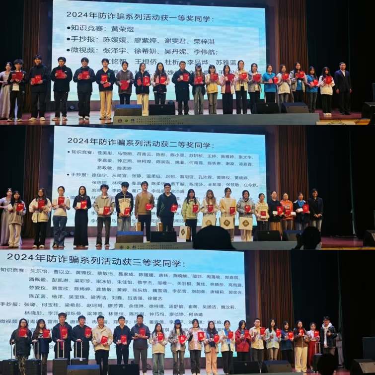 此外,本次大赛还举行了学院防诈骗系列活动的颁奖仪式。此次颁奖不仅是对参与者的肯定,更彰显学院筑牢防诈安全墙的坚定决心,助力构建平安校园。