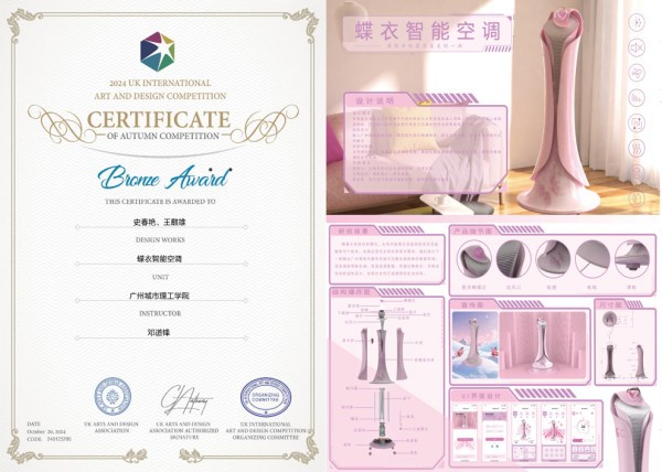 《蝶衣智能空调》获奖证书与展板展示(史春艳 提供)