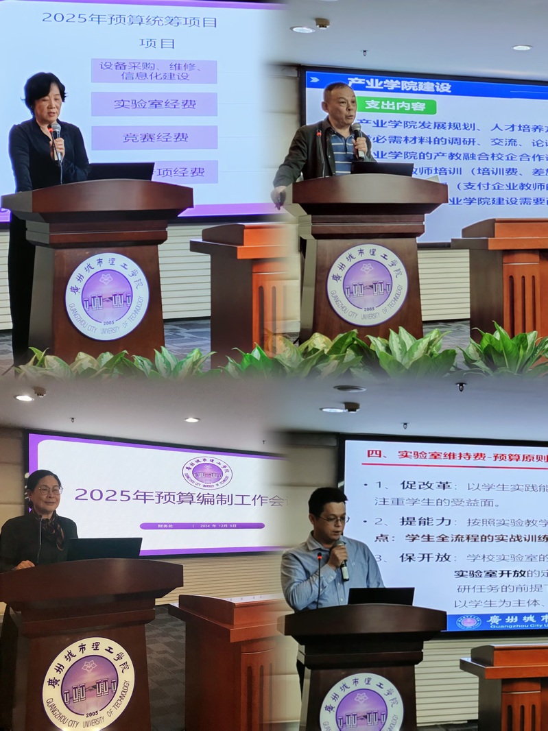 会议上,财务处处长高霞首先汇报了2024年度预算执行情况,分析了预算执行中的亮点与不足,并对2025年预算编制原则和预算编制总体要求做出部署。接下来,实验室管理中心主任陈锐鸿分析了学校实验室建设现状和今后建设的方向,并从实验室专项经费预算申报原则、经费使用等方面对实验项目预算申报做出辅导指引。随后,教务处处长张星明从专业、课程、产业学院和教改项目等多个方面,提出教学经费预算申报要注重加强专业建设、优化课程设置、推动产业学院发展,支持教学研究改革等,致力于提升教育教学质量。