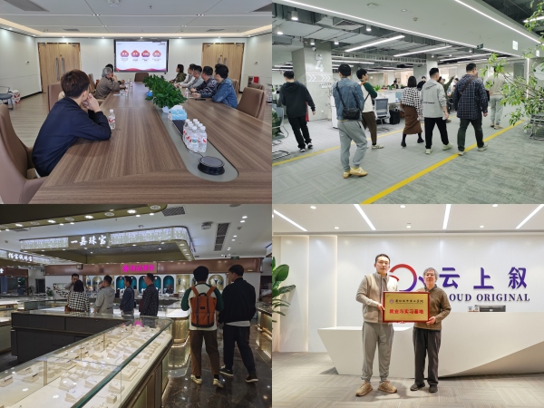 下午调研团队前往云上叙珠宝,详细了解了当前珠宝市场的最新趋势,从消费者偏好的变化到新兴技术的应用,再到营销模式的创新,每一个细节都透露出行业发展的蓬勃生机。企业相关负责人还分享了云上叙珠宝独特的运营模式,特别是在数字化转型、品牌建设及客户服务方面的成功案例,为团队成员提供了宝贵的行业洞察。随后,双方就专业课程建设、师资队伍培养、学生岗位实习等核心议题展开了深入而细致的探讨。云上叙珠宝的代表们根据市场实际需求,对学院的专业课程设置提出了中肯的建议,强调实践教学与理论知识的并重,以及跨领域技能培养的重要性。同时,他们也表达了对学院优秀师资的渴望,希望双方能在师资互聘、共同研发等方面开展合作。调研团队则详细介绍了学院的教育资源、教学特色及学生培养体系,表示将积极吸收企业的反馈,不断优化课程内容,加强实践教学环节,以更好地满足行业对人才的需求。双方还就学生实习岗位的设置、实习期间的指导与管理以及实习成果转化等具体问题进行了充分的沟通,达成了多项共识。
