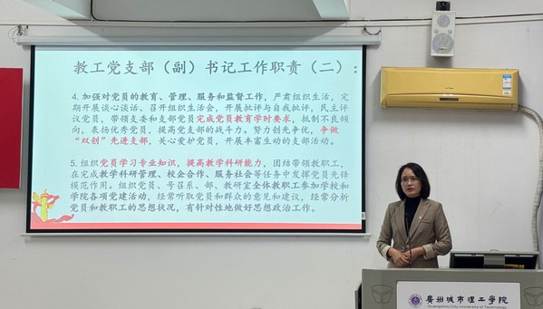 学习研讨结束后,结合支部换届工作,学院党总支副书记纪书燕为大家逐一介绍了各党支部委员的工作职责和工作任务要求。会议研究部署了下一阶段学院党建工作的要点和任务。