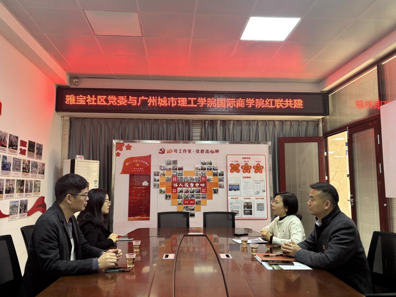 本网讯(记者 刘金彩)为整合各方优势资源,搭建党建合作平台,进一步推进国际商学院党建工作高质量发展,激发党建活力,为人才培养拓展新空间,12月30日上午,国际商学院党总支副书记梁伟滔带队与花都区秀全街雅宝社区党委、炭步镇塱头村党委开展党建结对共建活动。国际商学院学生工作办公室副主任、辅导员等参与此次活动。
