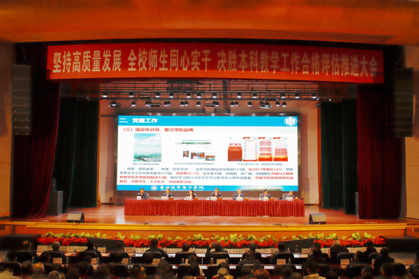 本网讯(记者 许晗星)3月6日下午,我校在学生活动中心召开“坚持高质量发展,全校师生同心实干,决胜本科教学工作合格评估推进大会”。学校党委书记杜小明主持会议并讲话,校长苏成作主题报告。校领导、全体教职工参加大会。