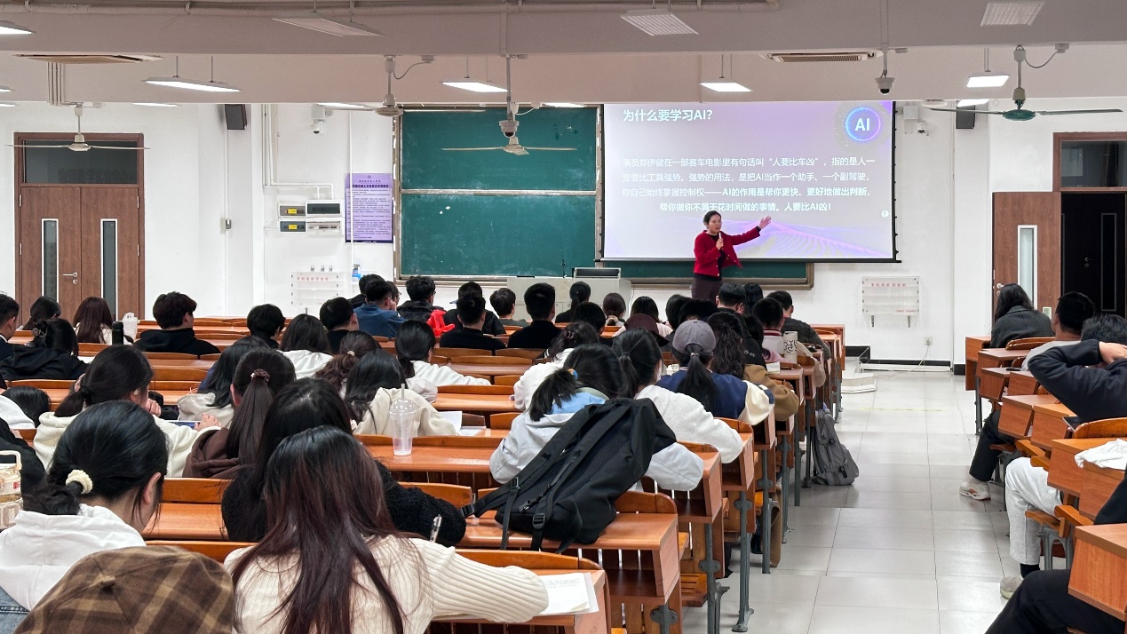 本网讯(记者 郭韵焓 刘成江)为帮助我校学生了解AI前沿技术,提升学习与求职竞争力,3月17日晚,图书馆联合土木工程学院在A5-201举办了一场以“DeepSeek+:打造从学习到求职的专属AI助手”为主题的AI分享课。本次讲座由土木工程学院副院长苑苗苗主讲,图书馆馆长郭培虹及300余名学生共同参与。