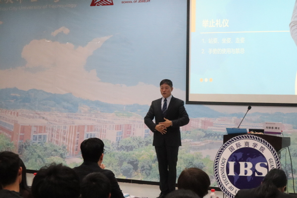 刘保春博士进行《礼宾规范与外事礼仪》讲座(蔡晓坤 摄)