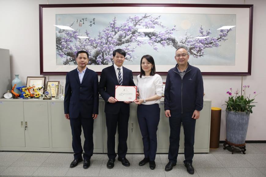本网讯(记者 李大章)为推进产教融合、深化应用型人才培养模式改革创新,3月25日,我校赴广州瑞松智能科技股份有限公司(以下简称“瑞松科技”)洽谈校企合作并挂牌实践教学基地。学校副校长周诗瑶,中山大学教授张建琦,管理学院院长及党总支书记参与座谈及授牌仪式。瑞松科技董事长孙志强、副董事长孙圣杰和相关职能部门负责人出席会议。
