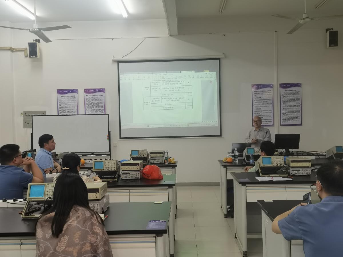 本网讯(记者 孙小广)3月28日,电子信息工程学院/通信工程学院在B2-204举办了主题为“第十一届全国大学生物理实验竞赛(创新)”的专题研讨会。研讨会由物理教学实验中心主任主持,学院物理教学实验中心教师参加了本次研讨会。会议邀请到华南理工大学物理与光电学院全国大学生物理实验竞赛(创新)团队带头人叶晓靖副主任和彭健新教授。