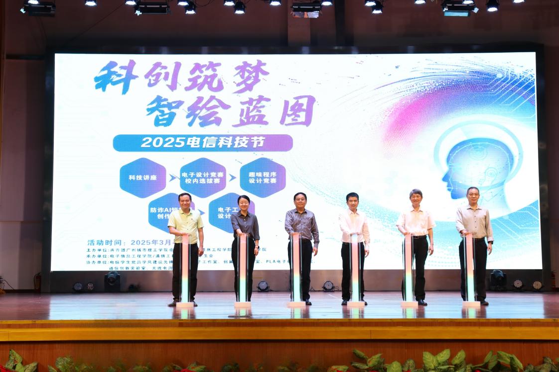 本网讯(记者 高歌 敖淇雅)为弘扬科技文化,营造浓厚创新氛围,增强学生的动手能力和创新热情,3月28日,由共青团广州城市理工学院委员会、电子信息工程学院/通信工程学院主办的“科创筑梦,智绘蓝图”2025电信科技节开幕式暨科技主题讲座在学生活动中心举行。我校党委副书记、副校长刘洊波,电子信息工程学院/通信工程学院院长姚若河,学校团委书记王羽,电子信息学院/通信工程学院相关领导干部及学院全体师生参加了本次活动。本次活动特别邀请了中国移动花都分公司党总支书记、总经理曾令创及企业相关负责人。