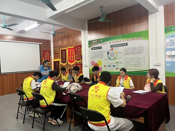 工作人员对志愿者进行培训(社工站工作人员 摄)