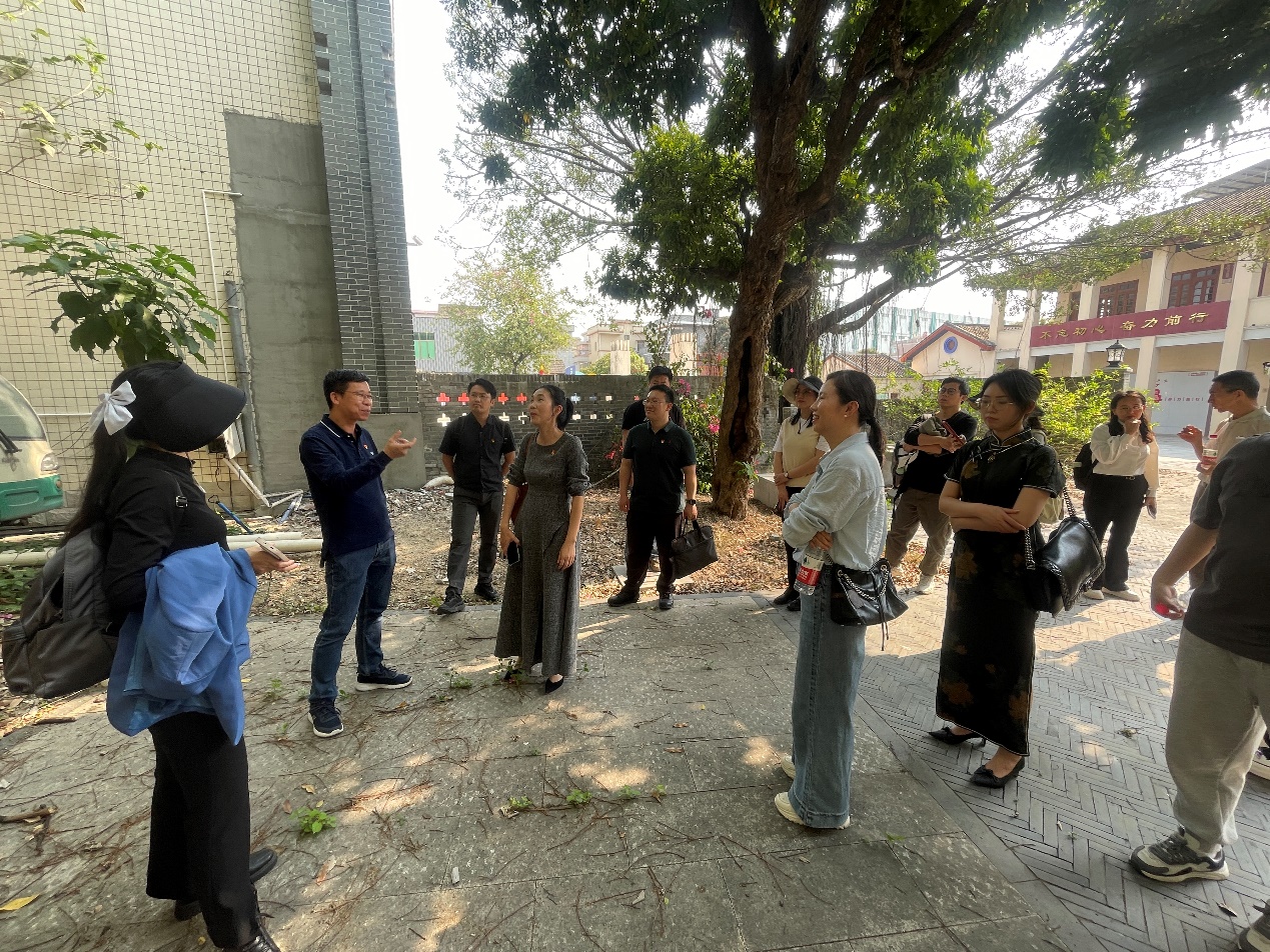 课后,洛场村党总支部书记江铜芬带领教工党支部党员教师实地踏勘5处濒危传统民居,探讨民居活化与侨乡文化名村建设,持续擦亮花山小镇文旅品牌。建筑学院党员教师团队提出“微介入”改造策略:运用新材料新技术修复夯土墙体、将废弃碉楼转型为“乡村文化客厅”、依托《小建筑测绘》课程建立数字档案库等方案。“我们计划以‘针灸式’改造激活片区,保留乡愁记忆的同时植入新功能。调研组最终选定2处典型建筑纳入《建筑设计》课程改造专题,相关测绘数据将直接服务于后续的“数字化洛场”项目。