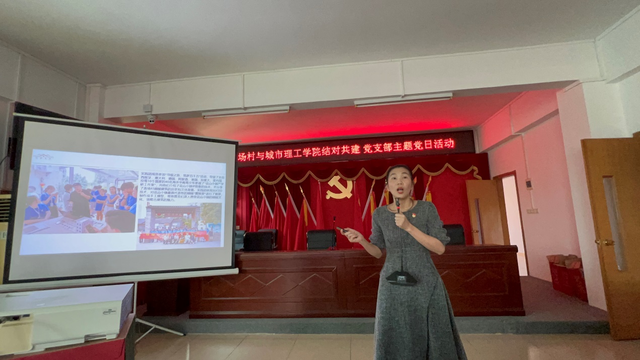 学校优秀共产党员、广东省筑创美育名师工作室负责人程东玲副教授以“党建引领守初心,产学研融合筑匠心”为题进行分享。她结合“筑创美育工作室”在岭南大地多个乡村实践案例,系统阐释“党建+专业+美育”的乡村振兴模式。她表示“美育不仅是艺术熏陶,更是唤醒乡村文化自觉的钥匙。”