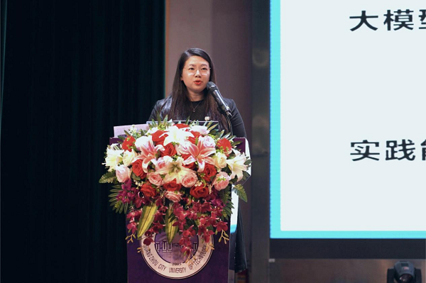 开幕式后,陈俊颖教授带来《大模型时代下计算机人才成长之路》主题讲座。她从大模型时代的特征与影响、新型能力矩阵构建、知识图谱迭代策略、实践能力锻造方法、职业发展新图景、挑战与应对策略六个方面,向同学们分享了前沿技术、行业趋势和职业发展经验。她指出,大模型时代下计算机专业学生需要具备跨学科知识,强化工程实践能力和创新能力,并建议同学们把握时代发展的机遇,积极面对风险与挑战,通过多参加线上课程、开源项目实践、产业实践等方式提升能力、积累经验以更好地适应岗位需求。最后,陈俊颖鼓励同学们积极提问,并一一给予解答。