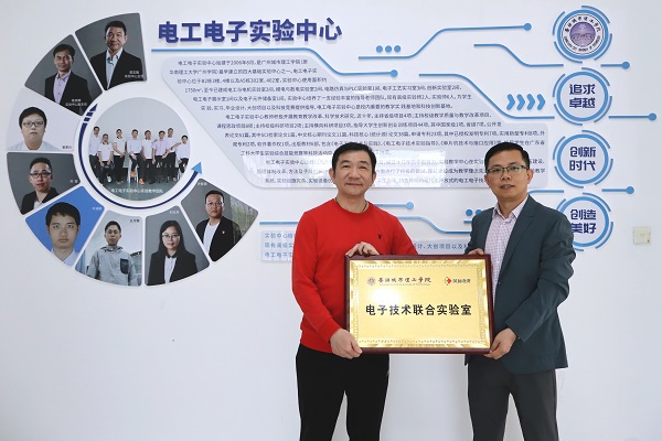 本网讯(记者 陈崇辉)4月11日,“电子技术联合实验室”在我校B2-302正式挂牌成立。此实验室是电气工程学院电工电子实验中心与广州风标教育技术股份有限公司合作共建的实验基地。广州风标教育技术股份有限公司总经理梁树先,电工电子实验中心主任、专任教师等参与了挂牌仪式。