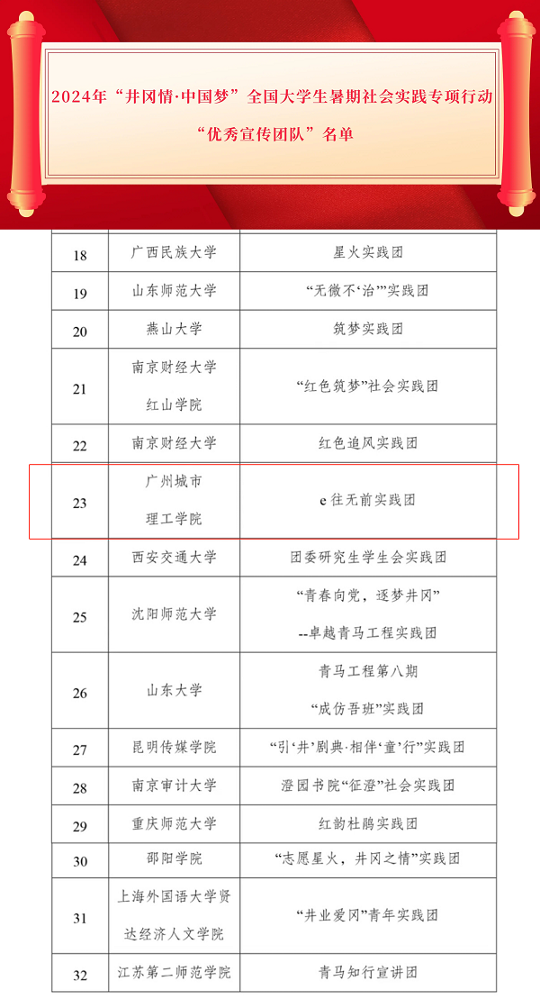本网讯(记者 罗婉玲 李佳韵)4月10日,全国青少年井冈山革命传统教育基地管理中心发布《2024年“井冈情·中国梦”暑期实践季优秀课题成果、优秀宣传团队名单公告》,我校计算机工程学院/大数据学院组织的e往无前实践团(以下简称“实践团”)从全国253支高校实践团队中脱颖而出,喜获2024年“井冈情·中国梦”全国大学生暑期社会实践专项行动“优秀宣传团队”称号。