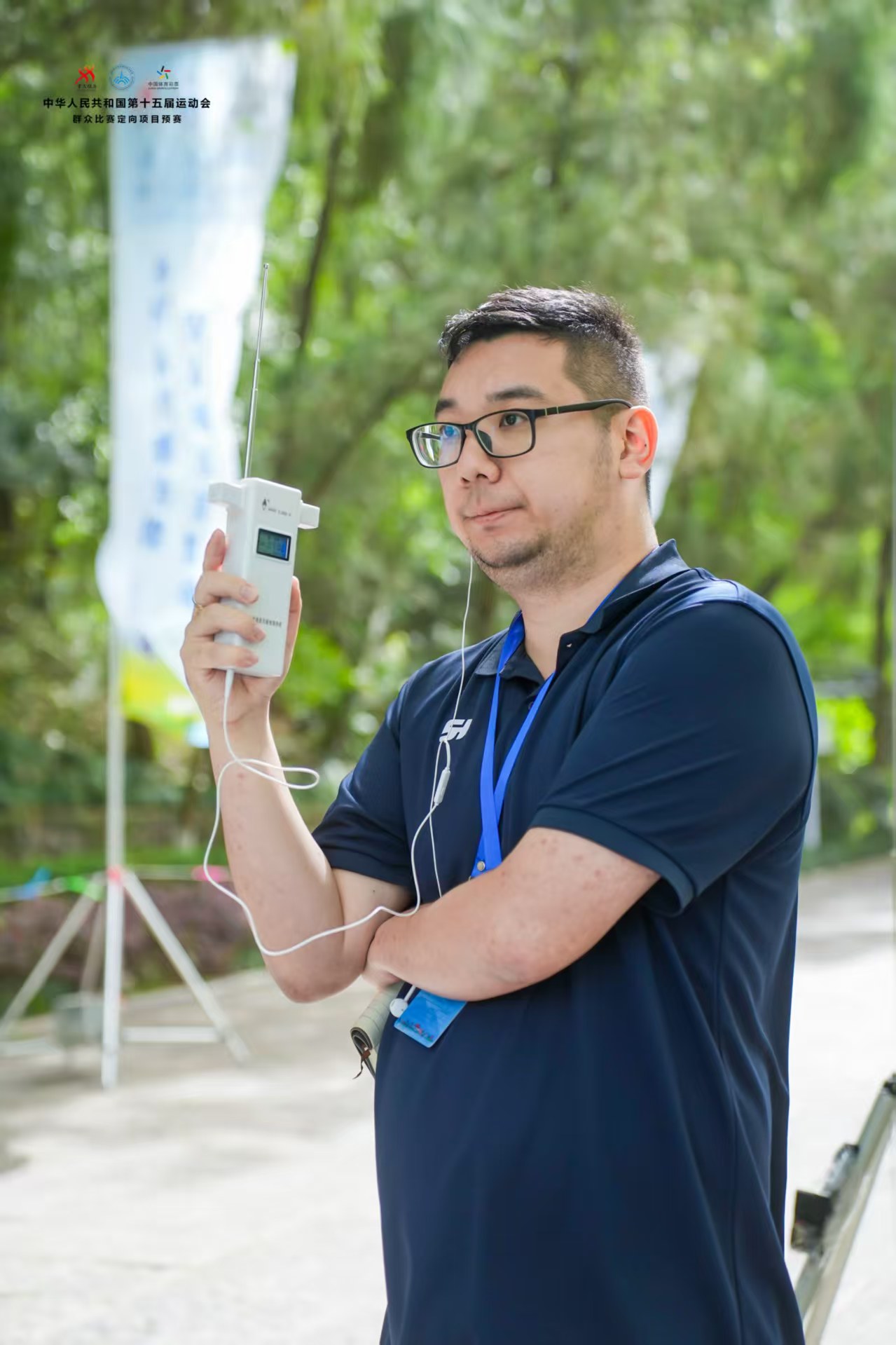 全运会定向预赛不仅是运动员的竞技场,而且也是专业能力的试金石。我校无线电测向队指导教师张亦勋,受国家体育总局航管中心邀请,担任本届赛事起点裁判工作。凭借丰富的赛事经验与扎实的专业素养,在复杂地形判罚、设备调试及突发情况应对中实现“零失误、零投诉”,以高效公正的执裁为赛事保驾护航。