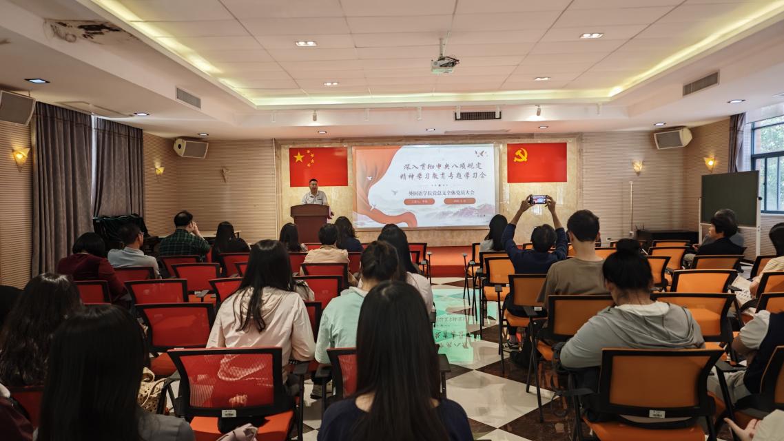本网讯(记者 李彩兰)为进一步增强全体党员的纪律意识和作风意识,4月16日下午,外国语学院党总支在A2-201室组织召开全体党员大会暨深入贯彻中央八项规定精神学习教育集中学习会。