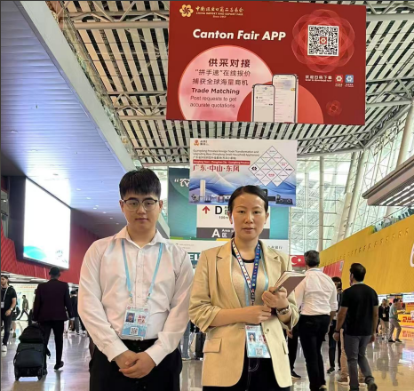 王正文和企业指导老师Daisy在广交会现场(王正文 提供)