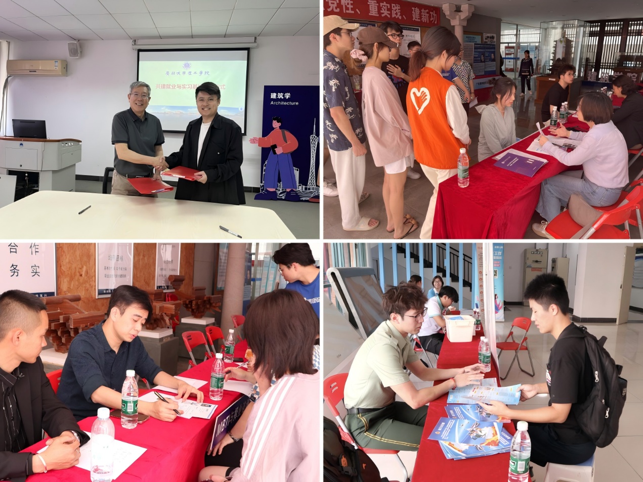 参加此次招聘会的企业包括香港华艺设计顾问(深圳)有限公司、广州汉森建筑设计有限公司和广东剑光电子科技有限公司等知名建筑类设计院和工程类企业,工作地点主要集中在广州、深圳等粤港澳大湾区区域。其间,奥华建筑设计(广东)有限公司与建筑学院就共建就业与实习基地达成共识,双方代表共同签署了共建就业与实习基地协议书,并举行了基地牌匾授牌仪式。学校2024届毕业生谢嘉雯代表奥华公司返回母校开展招聘工作,她表示:“以不一样的身份再次参加学院专场招聘会感到很高兴,看着学弟学妹们手持精心准备的简历,努力争取心仪的工作机会,让我仿佛看到了曾经的自己。希望学弟学妹们都能实现自己的就业目标,不断进步,为母校争光,为企业贡献力量。”