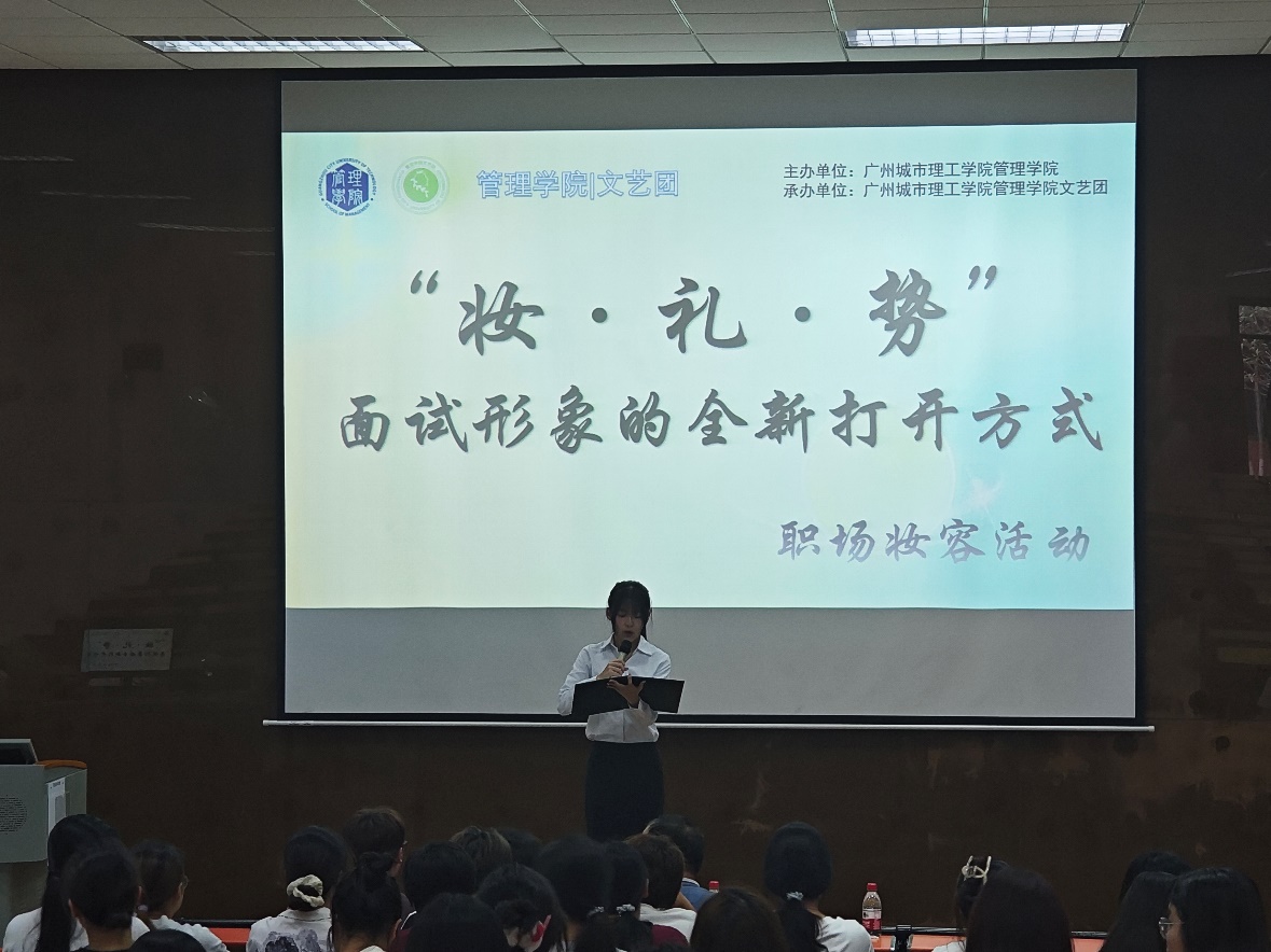 本网讯(记者 许妍妍)为夯实学生职业发展基础,帮助学生展现个人形象气质,4月24日下午,管理学院文艺团在A9-101室举办了主题为“妆·礼·势|面试形象的全新打开方式”主题活动。