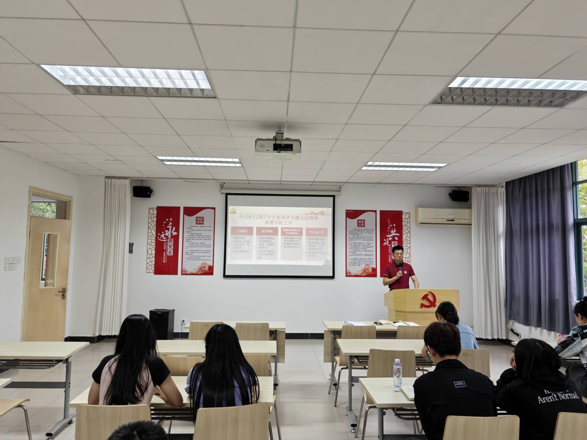 随后,学院学工办副主任师雯俏在会上传达了23日学生工作处专题会议精神。她从学风建设、宿舍管理以及学生安全工作等方面强调学生工作的重要性,学风建设是提升学生综合素质的关键,各年级应积极营造良好的学习氛围;宿舍管理要注重细节,确保学生生活环境安全舒适;同时要加强学生的安全教育,提高学生的防范意识,有效预防网络电信诈骗等安全事故的发生。